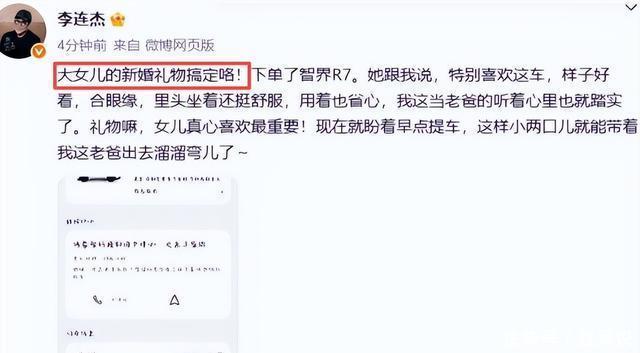他表示这车子是女儿特别喜欢的,而他听到女儿这种务实的态度也感到非常踏实。 确实没什么比自己孩子能好好过日子更让人放心的了,最后他还说想让女儿带着他遛弯呢。